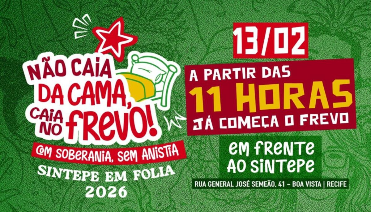 Neste ano, a folia do Sintepe traz como tema “Não Caia da Cama, Caia no Frevo”, celebrando a soberania nacional e reafirmando a defesa da democracia, ao mesmo tempo em que condena as tentativas de anistia a golpistas e criminosos por parte da ala ultra-conservadora no Congresso Nacional. A iniciativa une festa popular, consciência política e valorização da cultura do Estado, com atrações genuinamente pernambucanas.