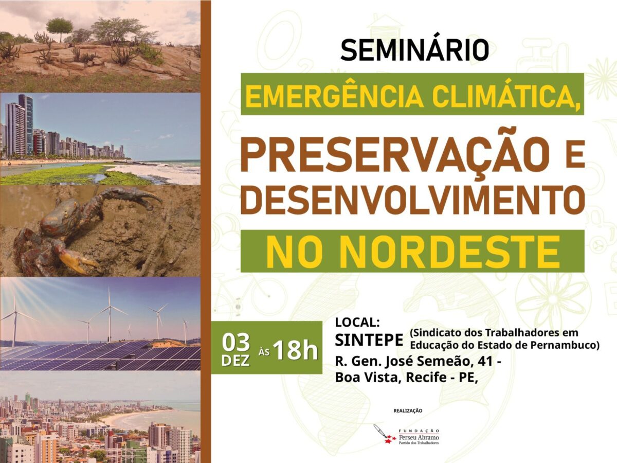 A Fundação Perseu Abramo realizará, no próximo dia 3 de dezembro, o seminário “Emergência Climática, Preservação e Desenvolvimento no Nordeste”, reunindo especialistas, pesquisadores e militantes da área de meio ambiente para debater o desenvolvimento sustentável e as necessárias adaptações climáticas na região.