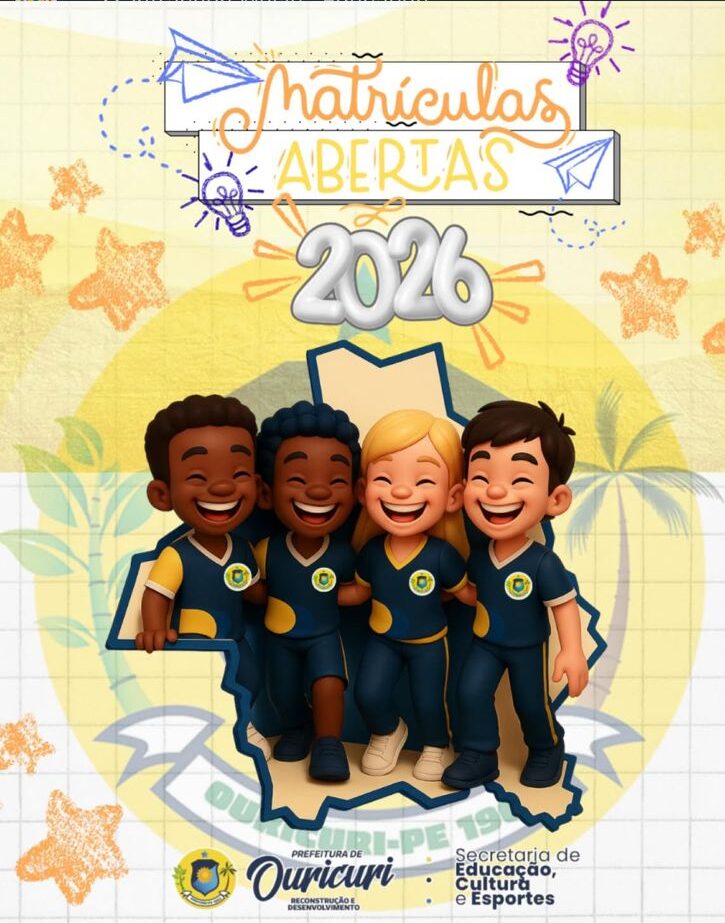 A Secretaria de Educação de Ouricuri iniciou o período de matrículas para a Rede Municipal de Ensino, com vagas disponíveis para o ano letivo de 2026. O processo contempla crianças e adolescentes desde a creche até o 9º ano do Ensino Fundamental, incluindo os Anos Finais.